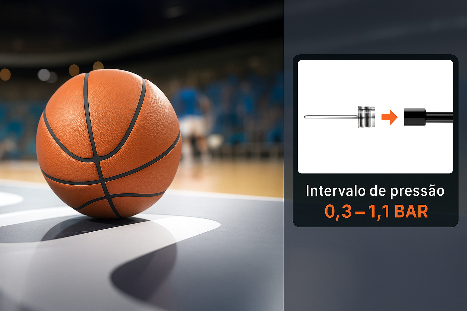 Garantem um ressalto ideal e consistente para bolas de basquetebol, futebol e outros desportos. Uma pressão correta melhora o controlo, o desempenho em jogo e prolonga a durabilidade da bola. (0,3–1,1 bar)