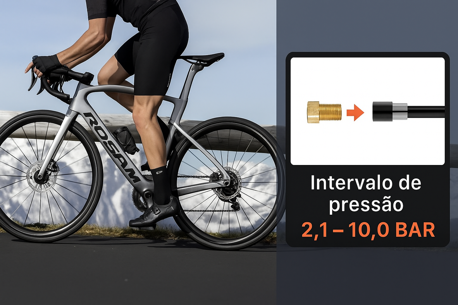 Encontre a pressão ideal para um desempenho ótimo, tanto nos seus treinos diários como nas subidas mais exigentes. Uma pressão precisa melhora a eficiência, o conforto e o controlo, em estrada ou fora dela. (2,1–10,0 bar)