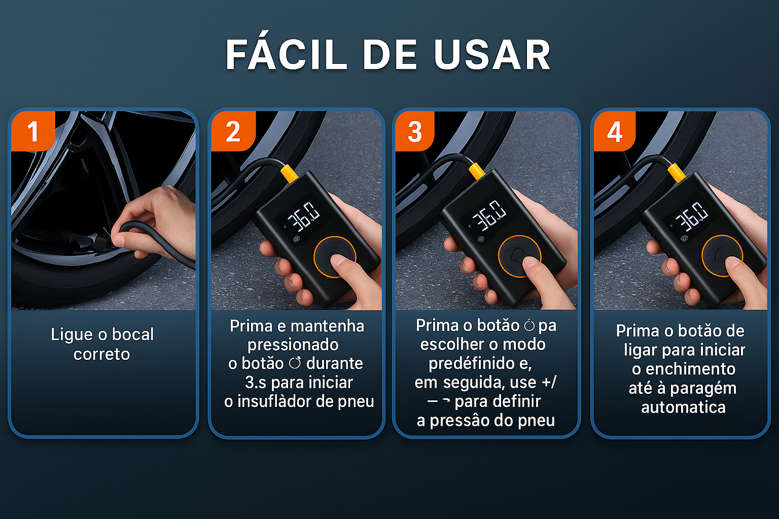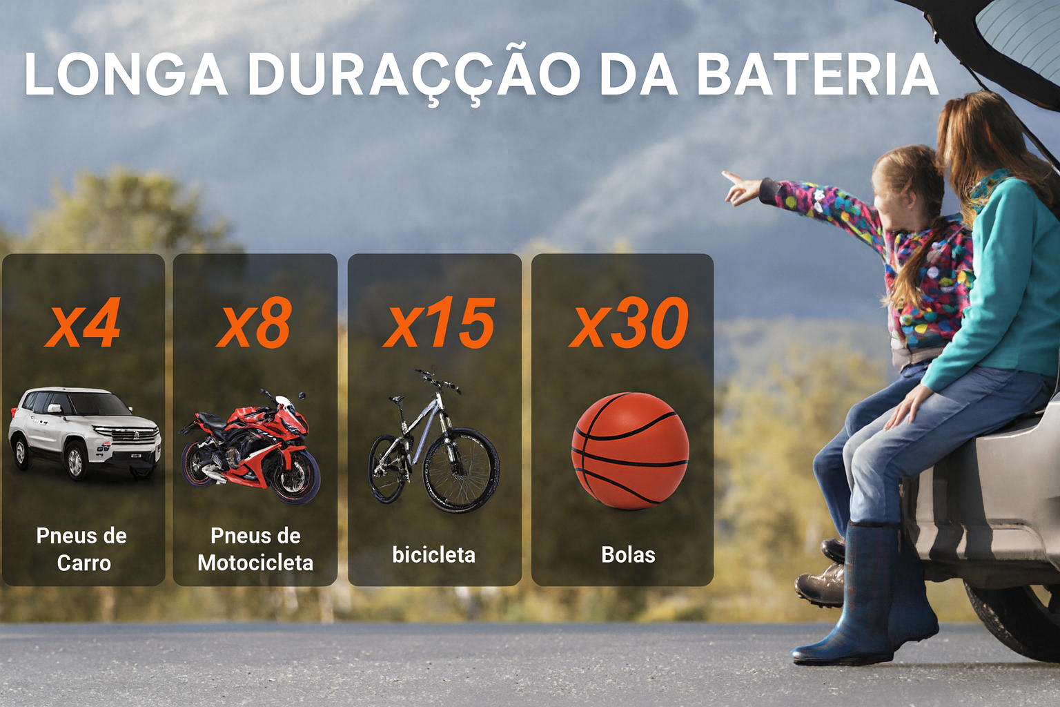 Certifique-se de que os pneus dos seus veículos do dia a dia estão corretamente calibrados para otimizar a segurança e o consumo de combustível. (1,8–3,4 bar)