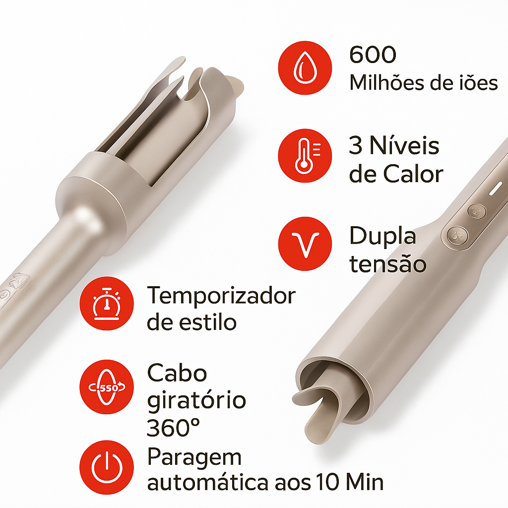 Sim, o LuxCurl Pro™ oferece três ajustes de temperatura reguláveis (320°F, 365°F e 410°F), o que o torna adequado para vários tipos de cabelo, desde cabelos finos e delicados até cabelos espessos e grossos. Sendo um modelador automático, o seu design com barril alongado garante uma distribuição uniforme do calor, proporcionando ondas duradouras adaptadas às necessidades do teu cabelo.